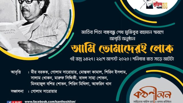 বঙ্গবন্ধু স্মরণে আবৃত্তি অনুষ্ঠান “আমি তোমাদেরই লোক” ২২শে আগস্ট ২০২০ শনিবার রাত ৮:৩০ মিনিট থেকে রাত ৯:৩০ মিনিট ফেসবুক লাইভ … বিস্তারিত »