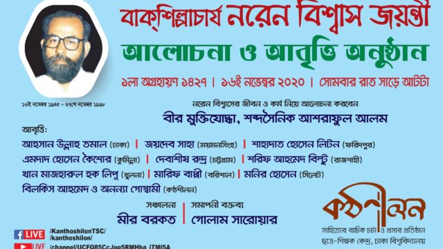 বাক্শিল্পাচার্য নরেন বিশ্বাস জয়ন্তী ১৬ই নভেম্বর ২০২০ সোমবার রাত ৮:৩০ মিনিট থেকে রাত ১০:০০ টা ফেসবুক লাইভ … বিস্তারিত »